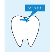 シーラントとは、奥歯の溝を薄いプラスチックで埋めて、虫歯にならないようにする虫歯予防法です。お子様の奥歯の溝には磨き残しが多く見られます。磨き残しのあるまま放っておくと、プラークが虫歯菌の活動を促進して奥歯を虫歯にしてしまう恐れがあります。そのため、奥歯の溝をあらかじめ『シーラント』と呼ばれる合成樹脂で固めておくことにより、 細菌や食べかすの付着を防いで虫歯予防に繋げることができます。